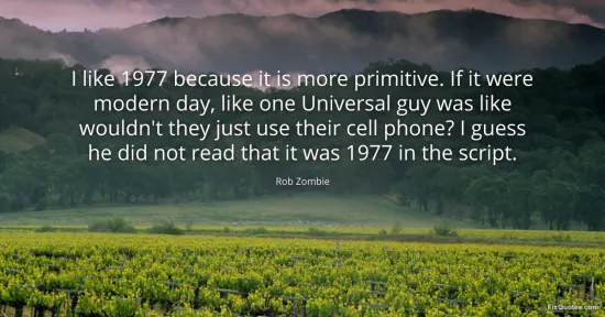 Zombie, Rob. "I like 1977 because it is more primitive. If it were modern day, like one Universal guy was like wouldn't they just use their cell phone? I guess he did not read that it was 1977 in the script." FixQuotes. January 16, 2026. https://fixquotes.com/quotes/i-like-1977-because-it-is-more-primitive-if-it-105907/.