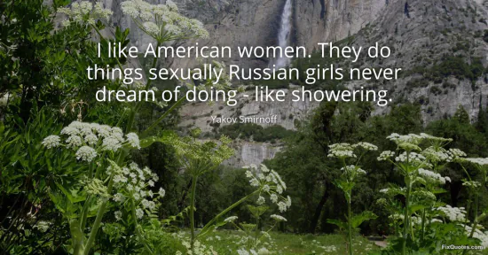 Smirnoff, Yakov. (2026, January 17). I like American women. They do things sexually Russian girls never dream of doing - like showering. FixQuotes. https://fixquotes.com/quotes/i-like-american-women-they-do-things-sexually-65754/