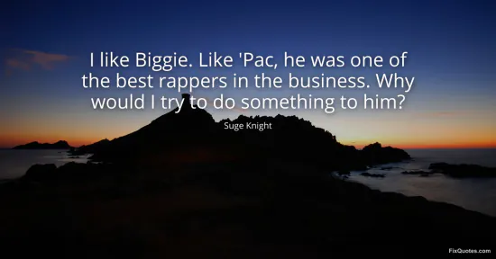 Knight, Suge. "I like Biggie. Like 'Pac, he was one of the best rappers in the business. Why would I try to do something to him?" FixQuotes. January 15, 2026. https://fixquotes.com/quotes/i-like-biggie-like-pac-he-was-one-of-the-best-65511/.