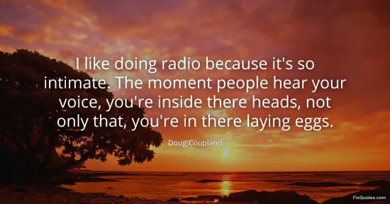"I like doing radio because it's so intimate. The moment people hear your voice, you're inside there heads, not only that, you're in there laying eggs"