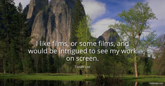 Lee, Tanith. (2026, January 17). I like films, or some films, and would be intrigued to see my work on screen. FixQuotes. https://fixquotes.com/quotes/i-like-films-or-some-films-and-would-be-intrigued-65925/