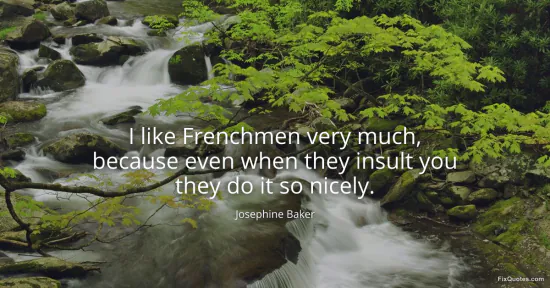 Baker, Josephine. "I like Frenchmen very much, because even when they insult you they do it so nicely." FixQuotes. January 16, 2026. https://fixquotes.com/quotes/i-like-frenchmen-very-much-because-even-when-they-132571/.