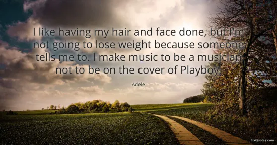 Adele. "I like having my hair and face done, but I'm not going to lose weight because someone tells me to. I make music to be a musician not to be on the cover of Playboy." FixQuotes. January 15, 2026. https://fixquotes.com/quotes/i-like-having-my-hair-and-face-done-but-im-not-22202/.