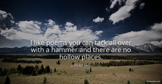 Ashbery, John. "I like poems you can tack all over with a hammer and there are no hollow places." FixQuotes. January 15, 2026. https://fixquotes.com/quotes/i-like-poems-you-can-tack-all-over-with-a-hammer-161962/.