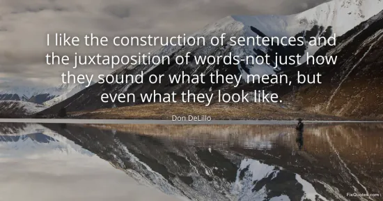 DeLillo, Don. (2026, January 15). I like the construction of sentences and the juxtaposition of words-not just how they sound or what they mean, but even what they look like. FixQuotes. https://fixquotes.com/quotes/i-like-the-construction-of-sentences-and-the-57939/