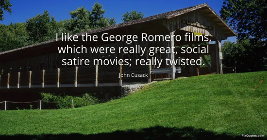 Cusack, John. "I like the George Romero films, which were really great, social satire movies; really twisted." FixQuotes. January 15, 2026. https://fixquotes.com/quotes/i-like-the-george-romero-films-which-were-really-100748/.