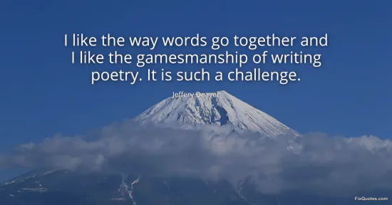 Deaver, Jeffery. (2026, January 17). I like the way words go together and I like the gamesmanship of writing poetry. It is such a challenge. FixQuotes. https://fixquotes.com/quotes/i-like-the-way-words-go-together-and-i-like-the-67111/
