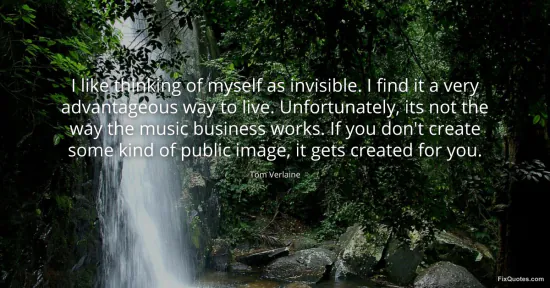 Verlaine, Tom. "I like thinking of myself as invisible. I find it a very advantageous way to live. Unfortunately, its not the way the music business works. If you don't create some kind of public image, it gets created for you." FixQuotes. January 16, 2026. https://fixquotes.com/quotes/i-like-thinking-of-myself-as-invisible-i-find-it-129429/.