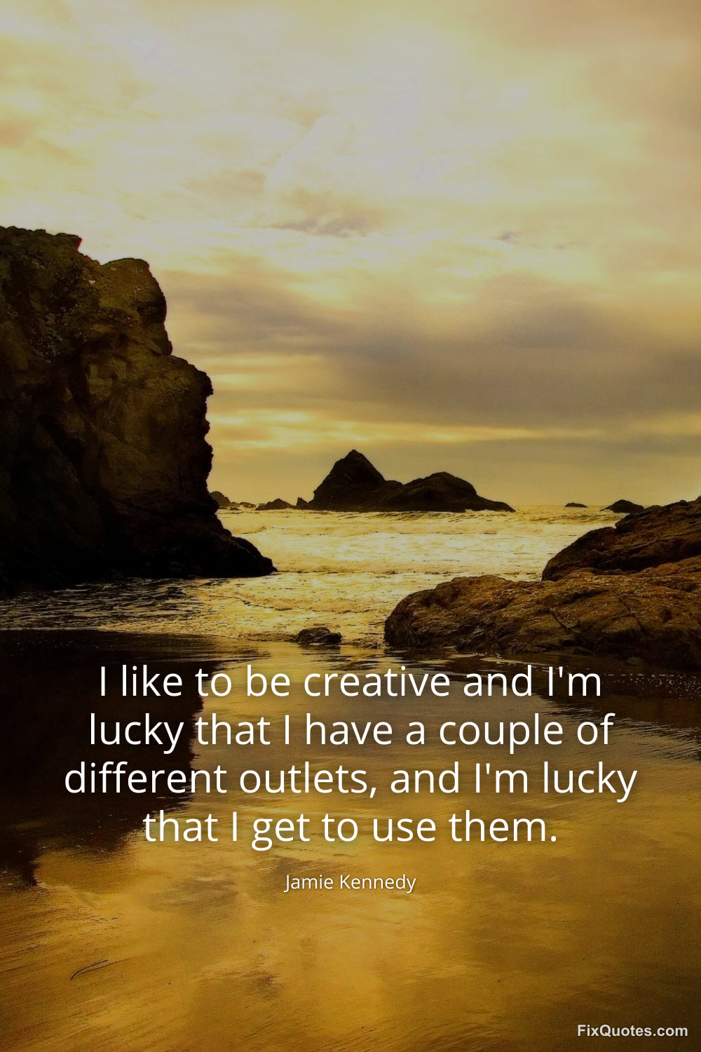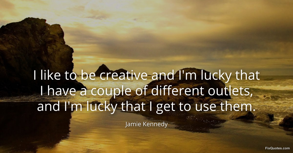 Kennedy, Jamie. (2026, January 15). I like to be creative and I'm lucky that I have a couple of different outlets, and I'm lucky that I get to use them. FixQuotes. https://fixquotes.com/quotes/i-like-to-be-creative-and-im-lucky-that-i-have-a-173159/