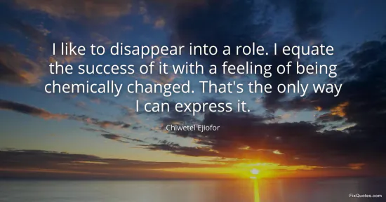 Ejiofor, Chiwetel. (2026, January 16). I like to disappear into a role. I equate the success of it with a feeling of being chemically changed. That's the only way I can express it. FixQuotes. https://fixquotes.com/quotes/i-like-to-disappear-into-a-role-i-equate-the-110074/