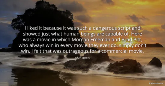 "I liked it because it was such a dangerous script and showed just what human beings are capable of. Here was a movie in which Morgan Freeman and Brad Pitt, who always win in every movie they ever do, simply don't win. I felt that was outrageous for a commercial movie"