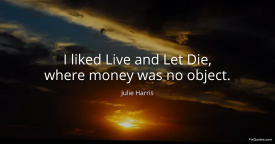 Harris, Julie. (2026, January 17). I liked Live and Let Die, where money was no object. FixQuotes. https://fixquotes.com/quotes/i-liked-live-and-let-die-where-money-was-no-object-70173/