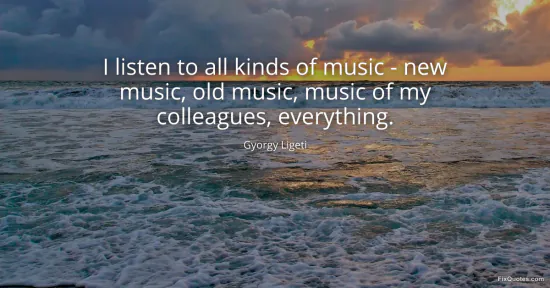 Ligeti, Gyorgy. (2026, January 16). I listen to all kinds of music - new music, old music, music of my colleagues, everything. FixQuotes. https://fixquotes.com/quotes/i-listen-to-all-kinds-of-music-new-music-old-111950/