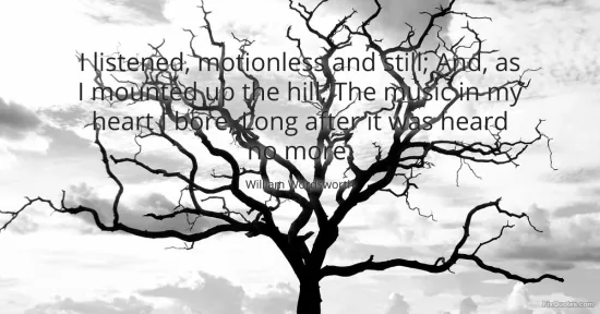 Wordsworth, William. "I listened, motionless and still; And, as I mounted up the hill, The music in my heart I bore, Long after it was heard no more." FixQuotes. January 18, 2026. https://fixquotes.com/quotes/i-listened-motionless-and-still-and-as-i-mounted-3436/.