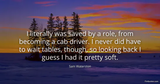 Waterston, Sam. (2026, January 16). I literally was saved by a role, from becoming a cab driver. I never did have to wait tables, though, so looking back I guess I had it pretty soft. FixQuotes. https://fixquotes.com/quotes/i-literally-was-saved-by-a-role-from-becoming-a-102636/
