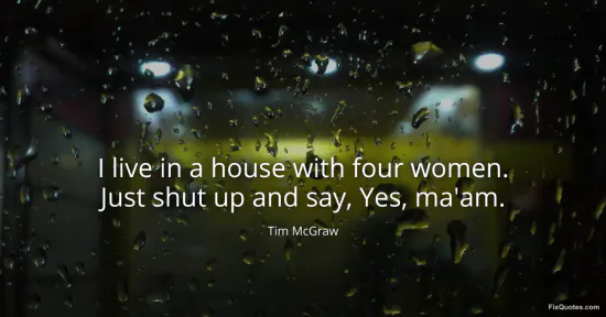 McGraw, Tim. (2026, January 16). I live in a house with four women. Just shut up and say, Yes, ma'am. FixQuotes. https://fixquotes.com/quotes/i-live-in-a-house-with-four-women-just-shut-up-129366/