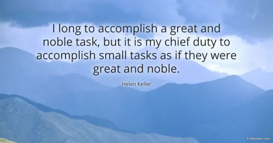 Keller, Helen. (2026, January 17). I long to accomplish a great and noble task, but it is my chief duty to accomplish small tasks as if they were great and noble. FixQuotes. https://fixquotes.com/quotes/i-long-to-accomplish-a-great-and-noble-task-but-26469/