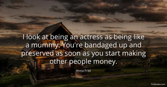 Friel, Anna. (2026, January 17). I look at being an actress as being like a mummy: You're bandaged up and preserved as soon as you start making other people money. FixQuotes. https://fixquotes.com/quotes/i-look-at-being-an-actress-as-being-like-a-mummy-40424/
