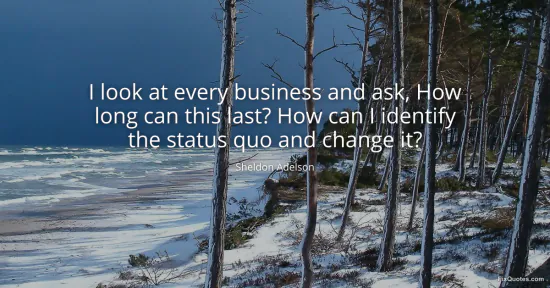 Adelson, Sheldon. "I look at every business and ask, How long can this last? How can I identify the status quo and change it?" FixQuotes. January 16, 2026. https://fixquotes.com/quotes/i-look-at-every-business-and-ask-how-long-can-120801/.