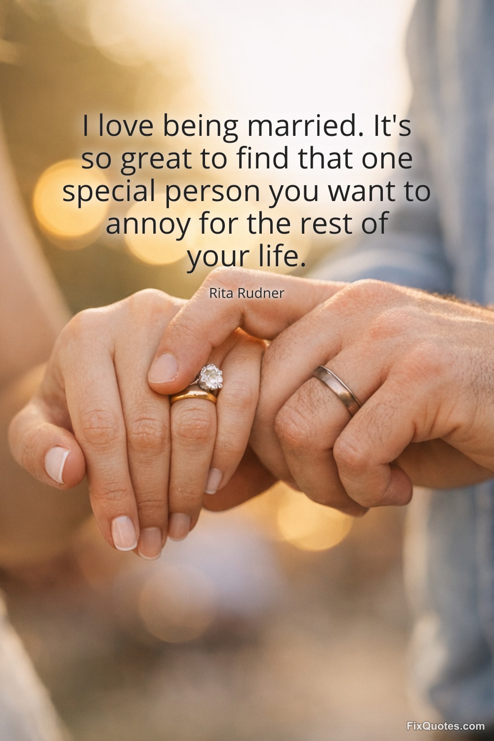 Rudner, Rita. (2026, January 23). I love being married. It's so great to find that one special person you want to annoy for the rest of your life. FixQuotes. https://fixquotes.com/quotes/i-love-being-married-its-so-great-to-find-that-77520/