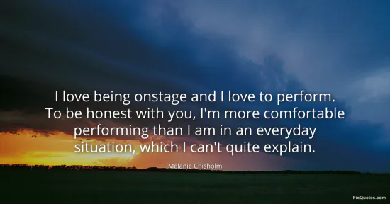 Chisholm, Melanie. (2026, January 15). I love being onstage and I love to perform. To be honest with you, I'm more comfortable performing than I am in an everyday situation, which I can't quite explain. FixQuotes. https://fixquotes.com/quotes/i-love-being-onstage-and-i-love-to-perform-to-be-152868/