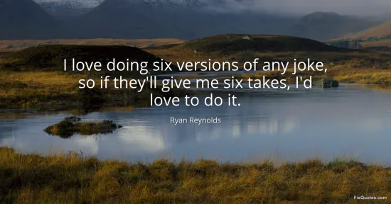 Reynolds, Ryan. (2026, January 16). I love doing six versions of any joke, so if they'll give me six takes, I'd love to do it. FixQuotes. https://fixquotes.com/quotes/i-love-doing-six-versions-of-any-joke-so-if-129123/