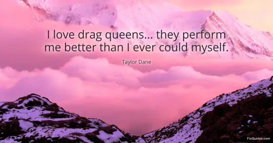 Dane, Taylor. "I love drag queens... they perform me better than I ever could myself." FixQuotes. January 16, 2026. https://fixquotes.com/quotes/i-love-drag-queens-they-perform-me-better-than-i-96655/.