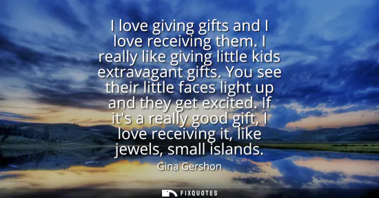 "I love giving gifts and I love receiving them. I really like giving little kids extravagant gifts. You see their little faces light up and they get excited. If it's a really good gift, I love receiving it, like jewels, small islands"
