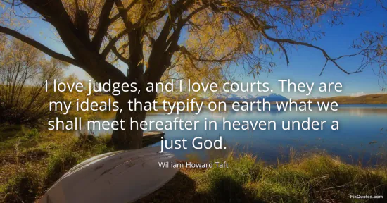 Taft, William Howard. (2026, January 16). I love judges, and I love courts. They are my ideals, that typify on earth what we shall meet hereafter in heaven under a just God. FixQuotes. https://fixquotes.com/quotes/i-love-judges-and-i-love-courts-they-are-my-96063/