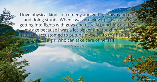 Diaz, Cameron. "I love physical kinds of comedy and getting down and dirty and doing stunts. When I was growing up, I was always getting into fights with guys and usually punching out boys my age because I was a lot bigger and tougher. So I'm naturally accustomed to putting myself into the headspace of a girl who can take care of herself." FixQuotes. January 17, 2026. https://fixquotes.com/quotes/i-love-physical-kinds-of-comedy-and-getting-down-44457/.