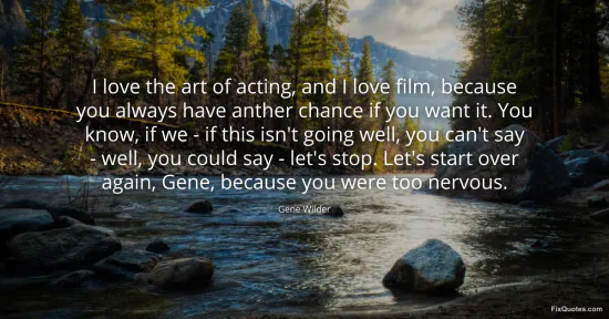 Wilder, Gene. "I love the art of acting, and I love film, because you always have anther chance if you want it. You know, if we - if this isn't going well, you can't say - well, you could say - let's stop. Let's start over again, Gene, because you were too nervous." FixQuotes. January 17, 2026. https://fixquotes.com/quotes/i-love-the-art-of-acting-and-i-love-film-because-67694/.