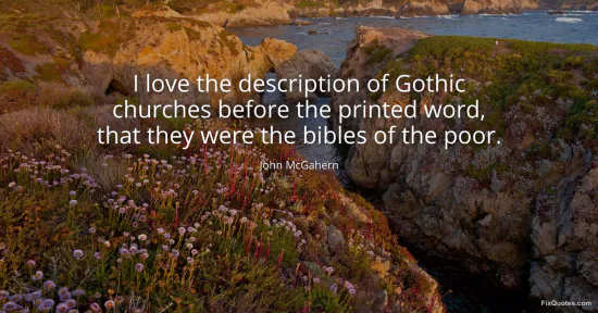 McGahern, John. (2026, January 16). I love the description of Gothic churches before the printed word, that they were the bibles of the poor. FixQuotes. https://fixquotes.com/quotes/i-love-the-description-of-gothic-churches-before-98616/