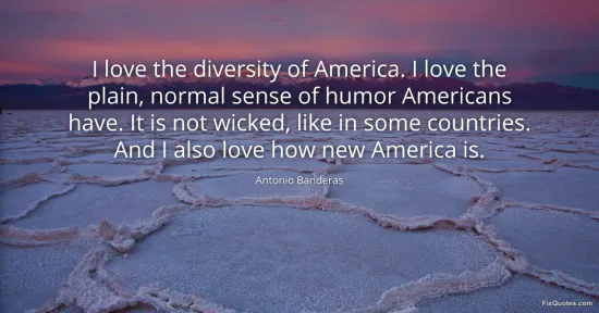 Banderas, Antonio. (2026, January 16). I love the diversity of America. I love the plain, normal sense of humor Americans have. It is not wicked, like in some countries. And I also love how new America is. FixQuotes. https://fixquotes.com/quotes/i-love-the-diversity-of-america-i-love-the-plain-131574/