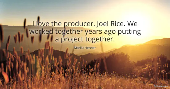 Henner, Marilu. (2026, January 17). I love the producer, Joel Rice. We worked together years ago putting a project together. FixQuotes. https://fixquotes.com/quotes/i-love-the-producer-joel-rice-we-worked-together-61353/