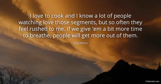 Danza, Tony. "I love to cook and I know a lot of people watching love those segments, but so often they feel rushed to me. If we give 'em a bit more time to breathe, people will get more out of them." FixQuotes. January 16, 2026. https://fixquotes.com/quotes/i-love-to-cook-and-i-know-a-lot-of-people-110912/.