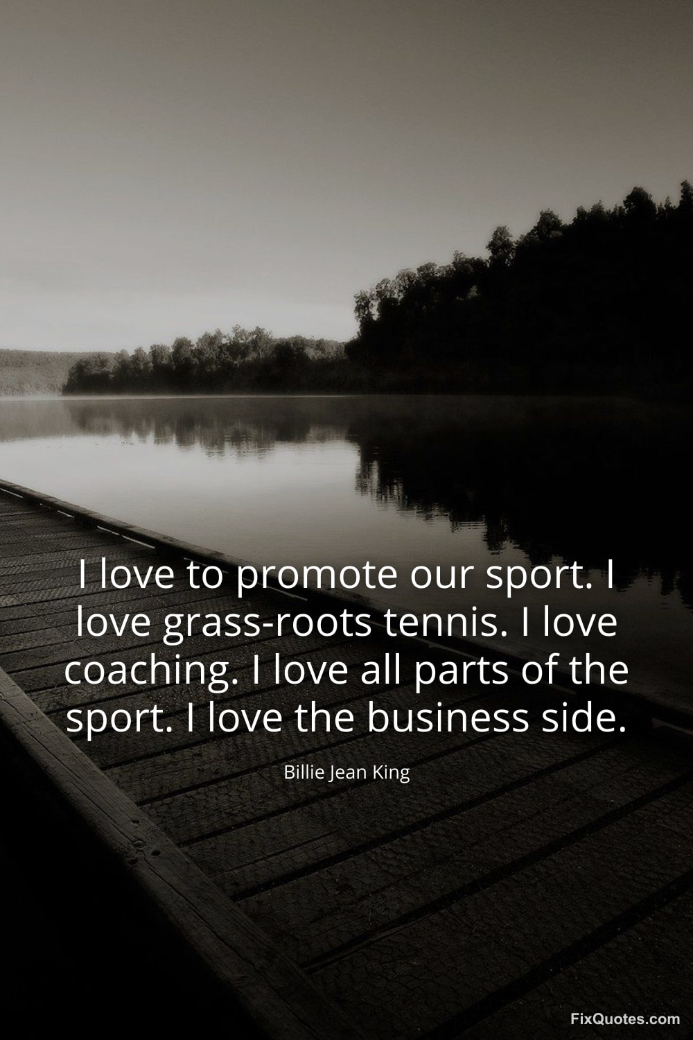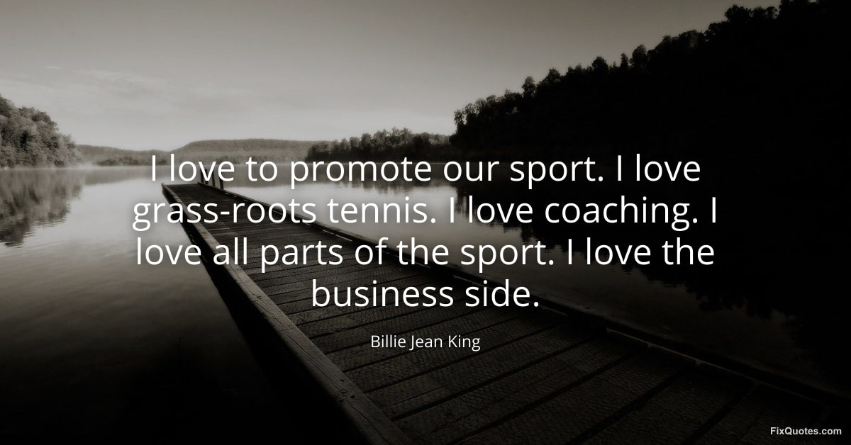 King, Billie Jean. (2026, January 17). I love to promote our sport. I love grass-roots tennis. I love coaching. I love all parts of the sport. I love the business side. FixQuotes. https://fixquotes.com/quotes/i-love-to-promote-our-sport-i-love-grass-roots-47599/