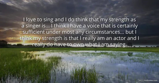 Harrison, Gregory. (2026, January 15). I love to sing and I do think that my strength as a singer is... I think I have a voice that is certainly sufficient under most any circumstances... but I think my strength is that I really am an actor and I really do have to own what I am saying. FixQuotes. https://fixquotes.com/quotes/i-love-to-sing-and-i-do-think-that-my-strength-as-148397/