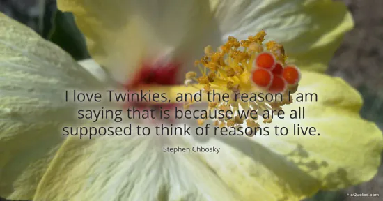Chbosky, Stephen. "I love Twinkies, and the reason I am saying that is because we are all supposed to think of reasons to live." FixQuotes. January 15, 2026. https://fixquotes.com/quotes/i-love-twinkies-and-the-reason-i-am-saying-that-173006/.
