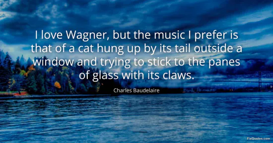 Baudelaire, Charles. "I love Wagner, but the music I prefer is that of a cat hung up by its tail outside a window and trying to stick to the panes of glass with its claws." FixQuotes. January 17, 2026. https://fixquotes.com/quotes/i-love-wagner-but-the-music-i-prefer-is-that-of-a-50565/.