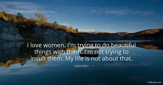 Klein, Calvin. "I love women. I'm trying to do beautiful things with them. I'm not trying to insult them. My life is not about that." FixQuotes. January 17, 2026. https://fixquotes.com/quotes/i-love-women-im-trying-to-do-beautiful-things-24408/.