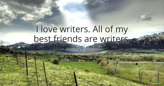 Clarkson, Patricia. (2026, January 16). I love writers. All of my best friends are writers. FixQuotes. https://fixquotes.com/quotes/i-love-writers-all-of-my-best-friends-are-writers-92838/
