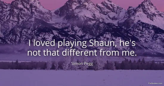 Pegg, Simon. (2026, January 16). I loved playing Shaun, he's not that different from me. FixQuotes. https://fixquotes.com/quotes/i-loved-playing-shaun-hes-not-that-different-from-85794/