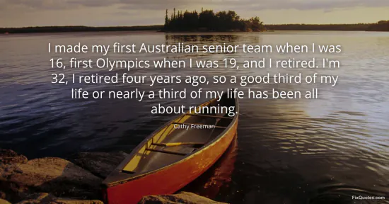 Freeman, Cathy. (2026, January 17). I made my first Australian senior team when I was 16, first Olympics when I was 19, and I retired. I'm 32, I retired four years ago, so a good third of my life or nearly a third of my life has been all about running. FixQuotes. https://fixquotes.com/quotes/i-made-my-first-australian-senior-team-when-i-was-43786/