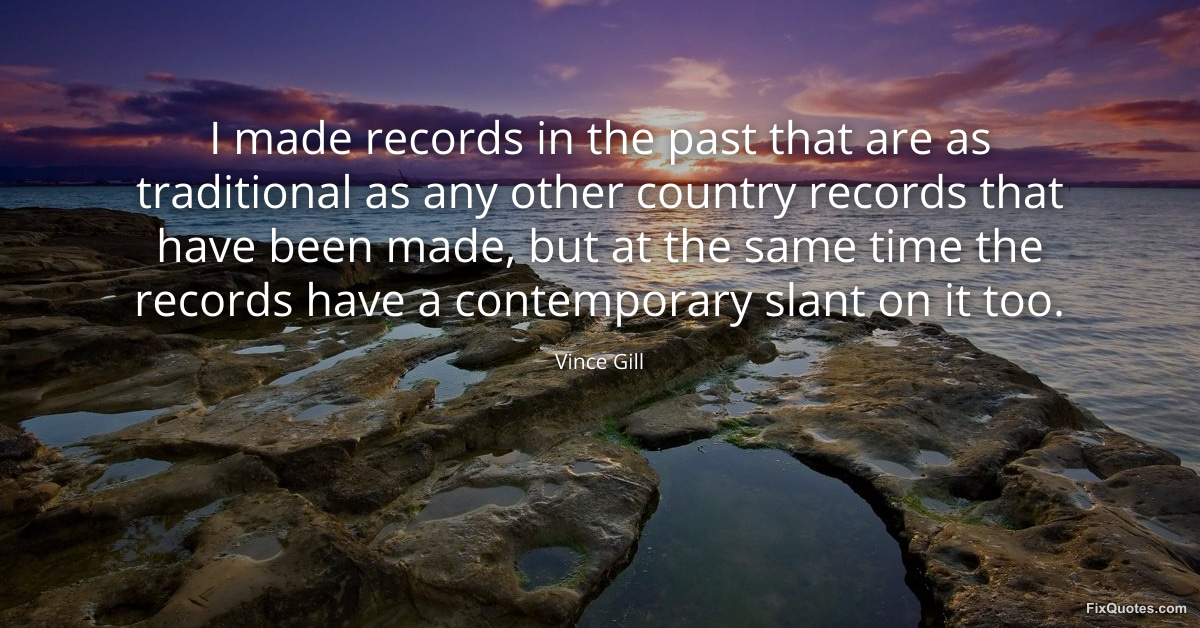 Gill, Vince. (2026, January 15). I made records in the past that are as traditional as any other country records that have been made, but at the same time the records have a contemporary slant on it too. FixQuotes. https://fixquotes.com/quotes/i-made-records-in-the-past-that-are-as-163504/