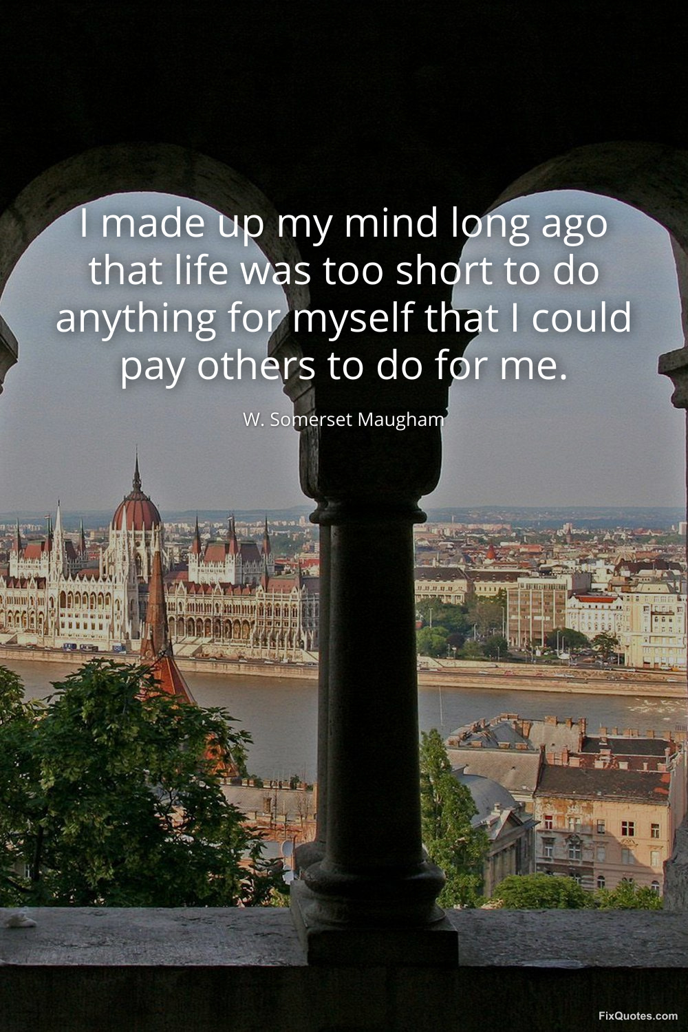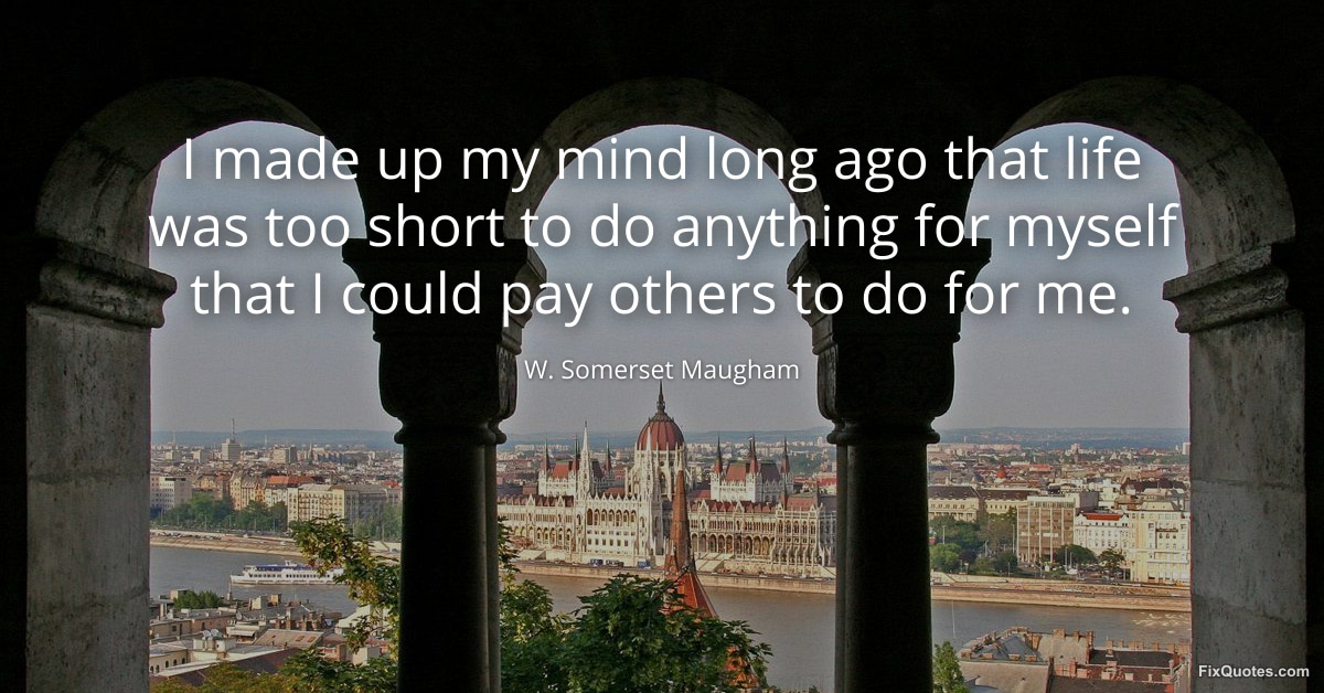 Maugham, W. Somerset. (2026, January 18). I made up my mind long ago that life was too short to do anything for myself that I could pay others to do for me. FixQuotes. https://fixquotes.com/quotes/i-made-up-my-mind-long-ago-that-life-was-too-2624/