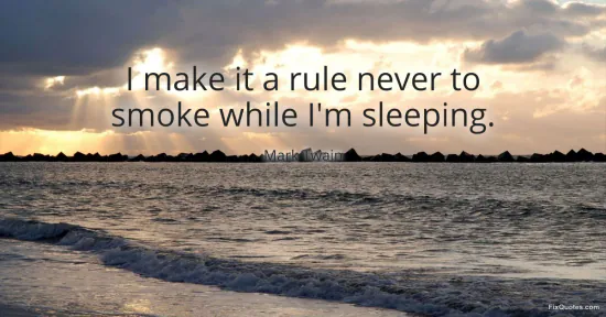 Twain, Mark. (2026, January 17). I make it a rule never to smoke while I'm sleeping. FixQuotes. https://fixquotes.com/quotes/i-make-it-a-rule-never-to-smoke-while-im-sleeping-33342/