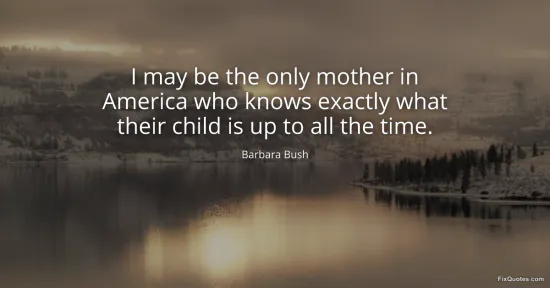 Bush, Barbara. "I may be the only mother in America who knows exactly what their child is up to all the time." FixQuotes. January 18, 2026. https://fixquotes.com/quotes/i-may-be-the-only-mother-in-america-who-knows-15662/.