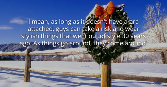 Tyler, Steven. "I mean, as long as it doesn't have a bra attached, guys can take a risk and wear stylish things that went out of style 30 years ago. As things go around, they come around." FixQuotes. January 18, 2026. https://fixquotes.com/quotes/i-mean-as-long-as-it-doesnt-have-a-bra-attached-1916/.