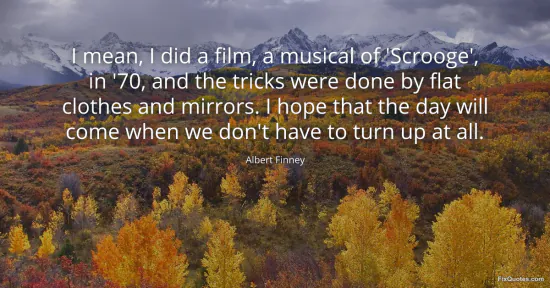 Finney, Albert. "I mean, I did a film, a musical of 'Scrooge', in '70, and the tricks were done by flat clothes and mirrors. I hope that the day will come when we don't have to turn up at all." FixQuotes. January 17, 2026. https://fixquotes.com/quotes/i-mean-i-did-a-film-a-musical-of-scrooge-in-70-39515/.