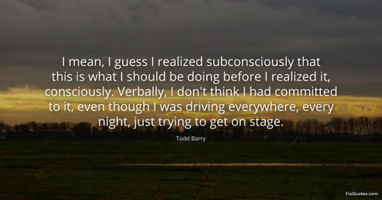 Barry’s line lands because it’s a comedian describing ambition in the least heroic register possible: not a calling, not a “dream,” but a slow-motion surrender to behavior. The key move is the split between the subconscious and the verbal, between what your body is already doing and what your mouth is willing to dignify as a plan. “Verbally, I don’t think I had committed” is both self-deprecation and a subtle indictment of the way we treat commitment as something that only counts once it’s declared. In comedy, that gap matters: saying you’re going to do it opens you up to judgment; doing it in the shadows lets you fail privately.